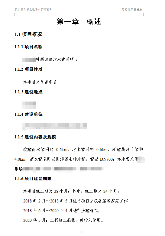 某鄉(xiāng)鎮(zhèn)升級(jí)改造污水管網(wǎng)項(xiàng)目可行性研究報(bào)告
